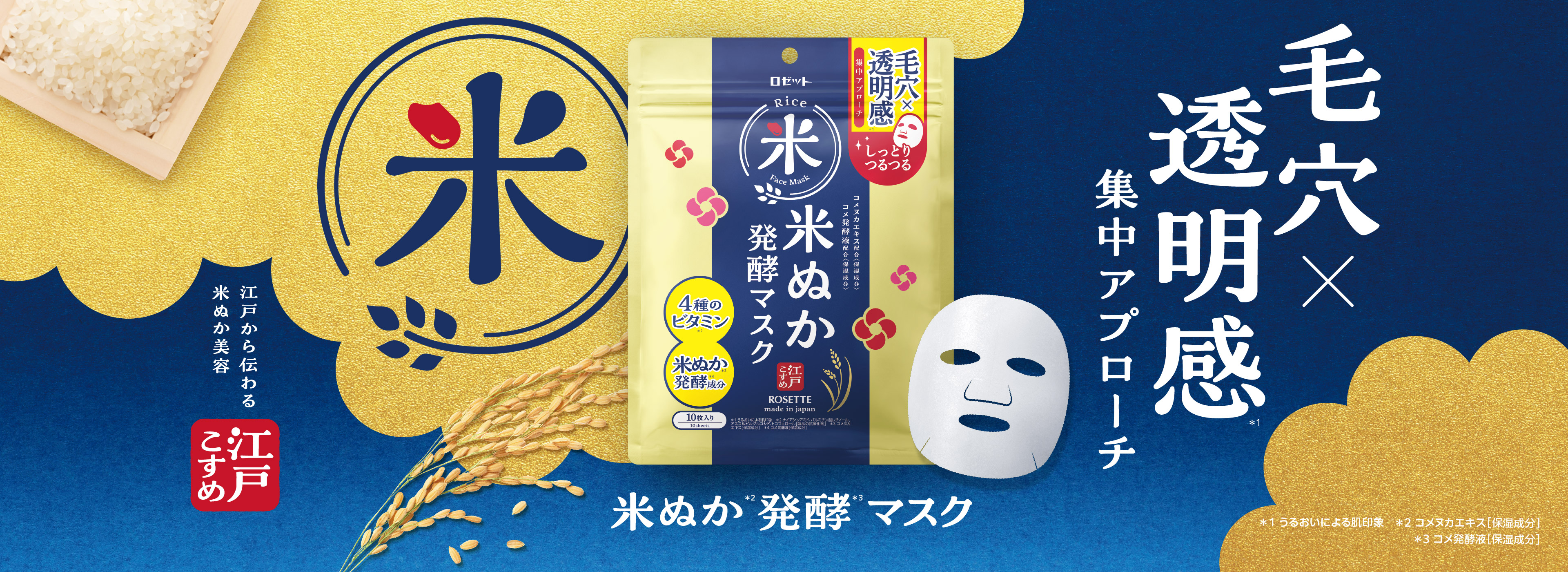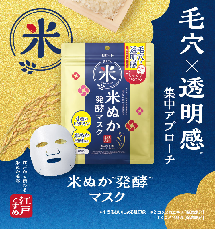 米ぬか*2発酵*3成分と4種ビタミン*4配合のシートマスクで、しっとりつるつる江戸美人肌へ